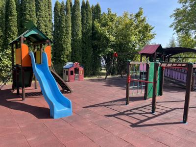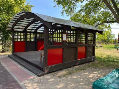 odmalowane zostały domki na placu zabaw oraz altanka,