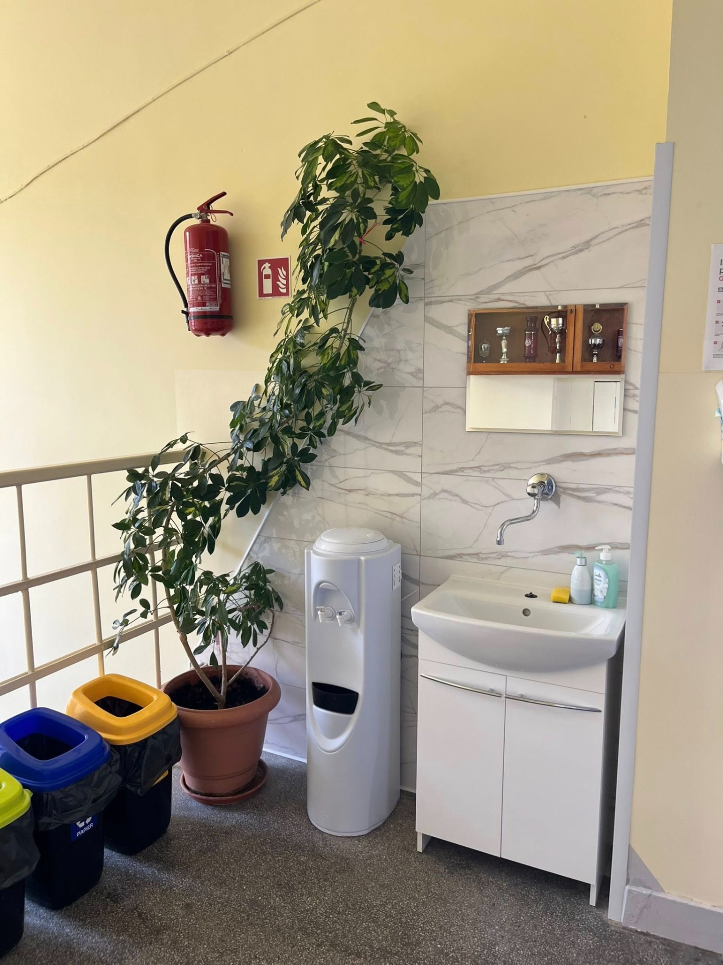 odświeżyliśmy kącik na górnym korytarzu (nowe płytki i umywalka),