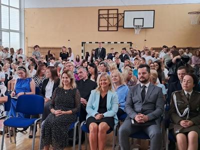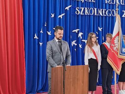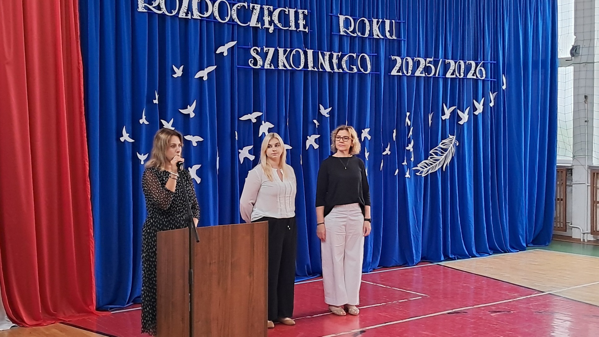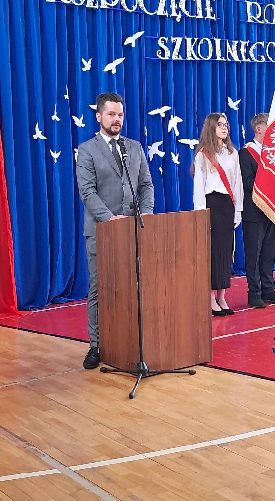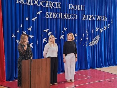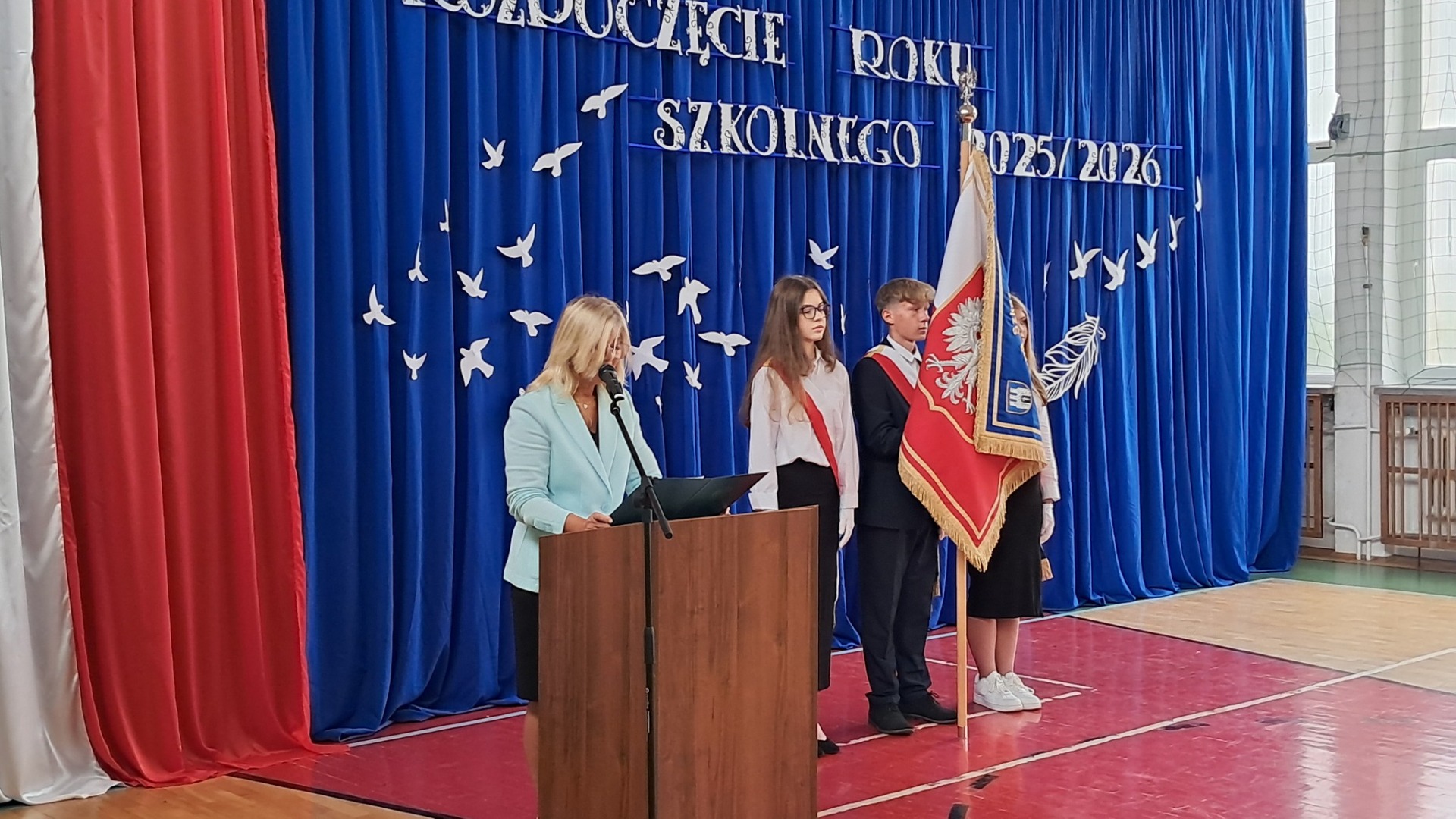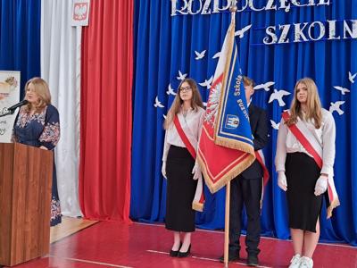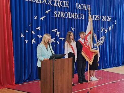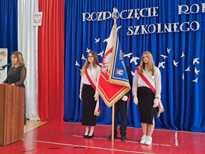 Uroczystość poprowadziła Dyrektor szkoły – Agata Kępka, która przywitała wszystkich zebranych, podziękowała gościom za obecność oraz skierowała do uczniów słowa otuchy i motywacji na rozpoczynający się rok szkolny.