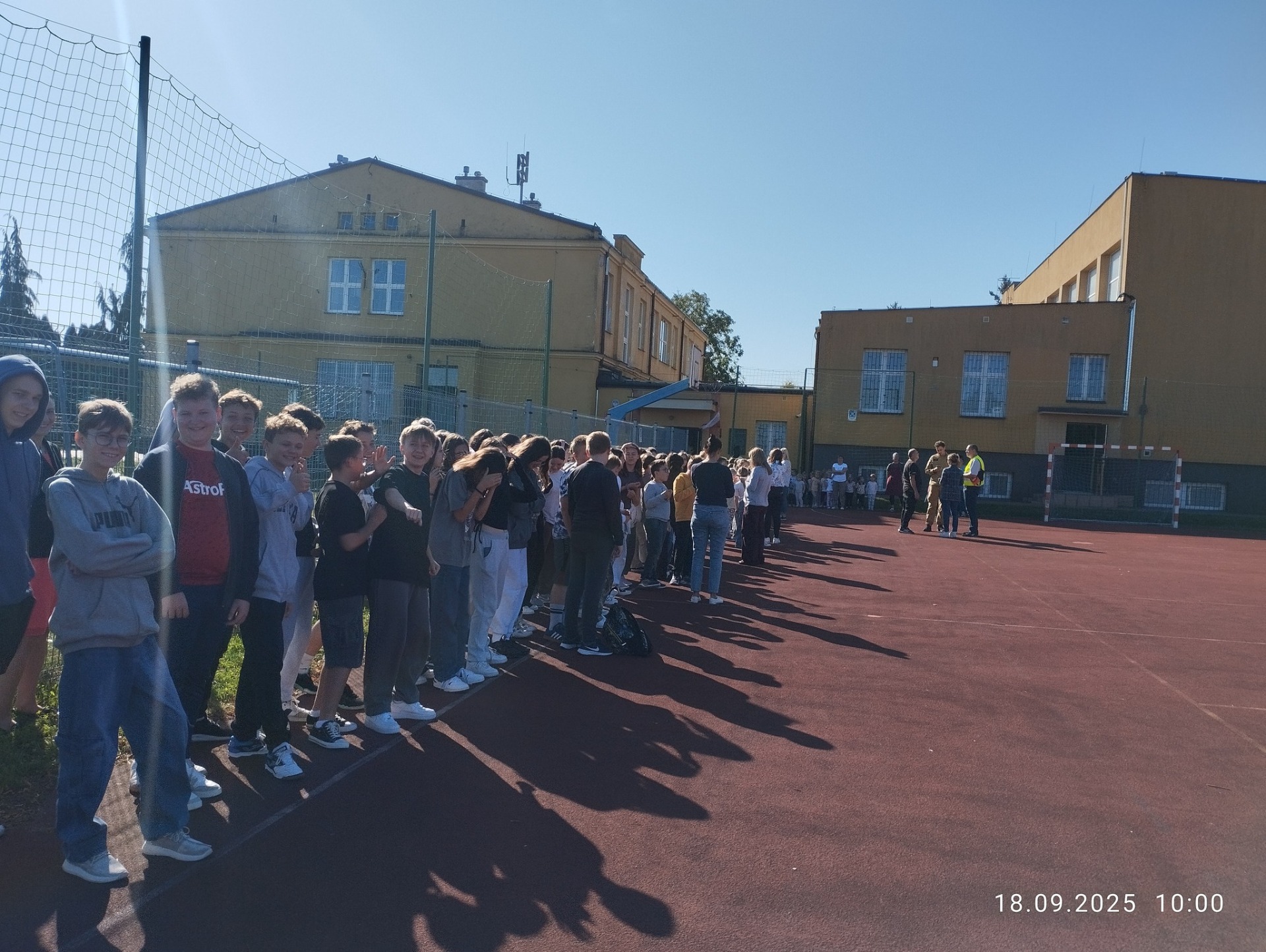 W dniu 18 września 2025 roku w naszej szkole przeprowadzono próbną ewakuację