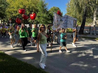 W radosnym, jabłkowym klimacie maszerowaliśmy z banerem szkoły przy dźwiękach orkiestry dętej, trzymając czerwone balony w kształcie jabłuszek. Na miejscu wydarzenia czekało na nas mnóstwo atrakcji dla małych i dużych, ale nam największą radość i frajdę sprawiła przejażdżka zabytkową drezyną!