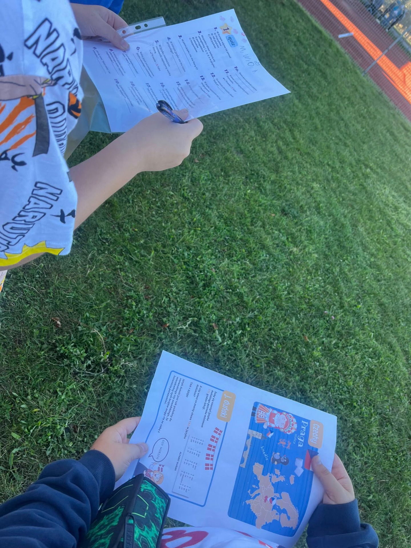 Uczniowie klasy czwartej i piątej mieli dziś szansę na sprawdzenie swojej wiedzy o europejskich językach, a także na poznanie mnóstwa ciekawostek związanych z krajami i językami Unii Europejskiej. W grze terenowej grupami przeszukiwali boisko szkolne w poszukiwaniu wskazówek do zadań. Wszyscy świetnie się bawili podczas nauki, bo kto powiedział, że zabawa i nauka nie mogą iść w parze. W końcu zrelaksowany mózg lepiej przyswaja wiadomości .