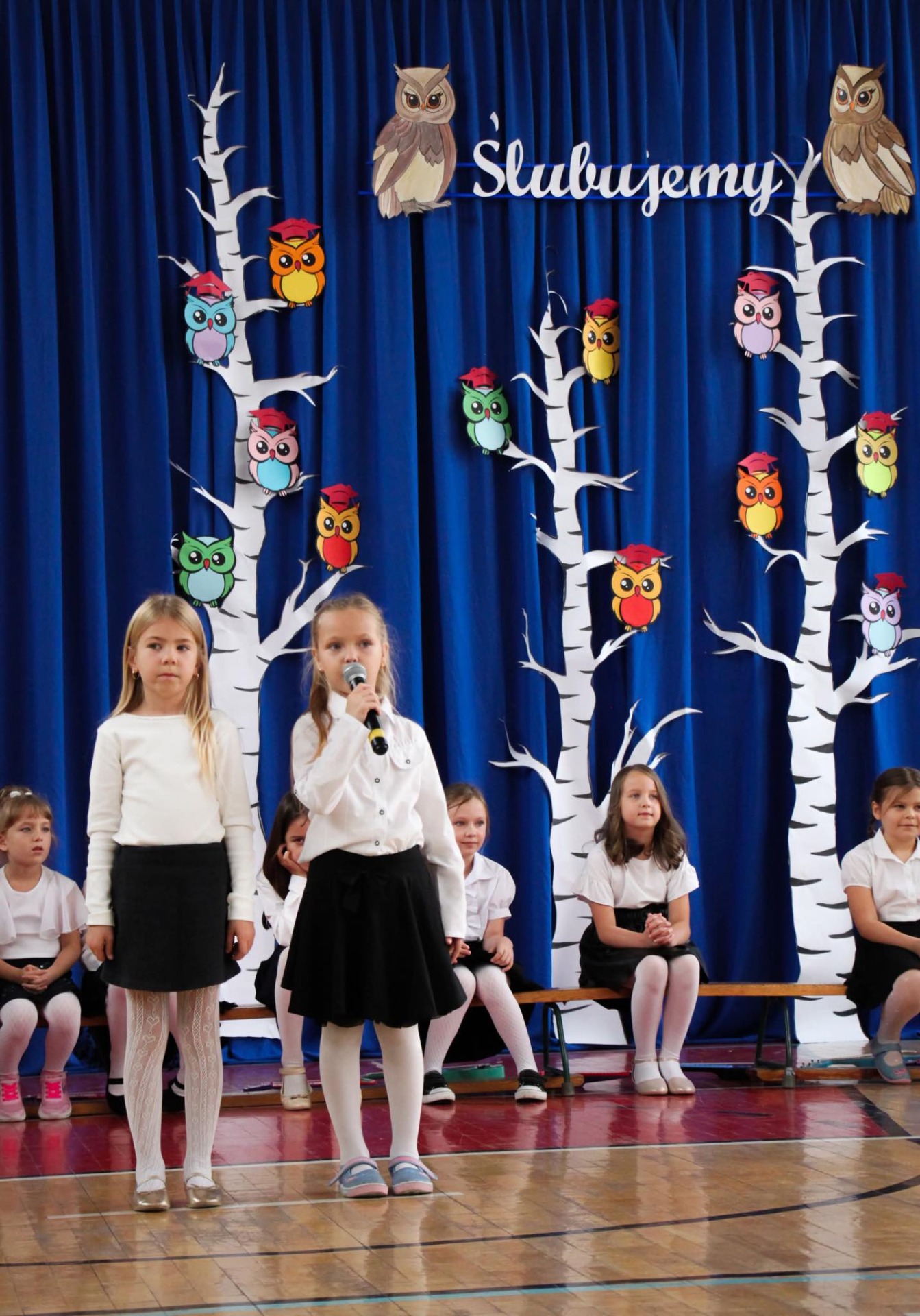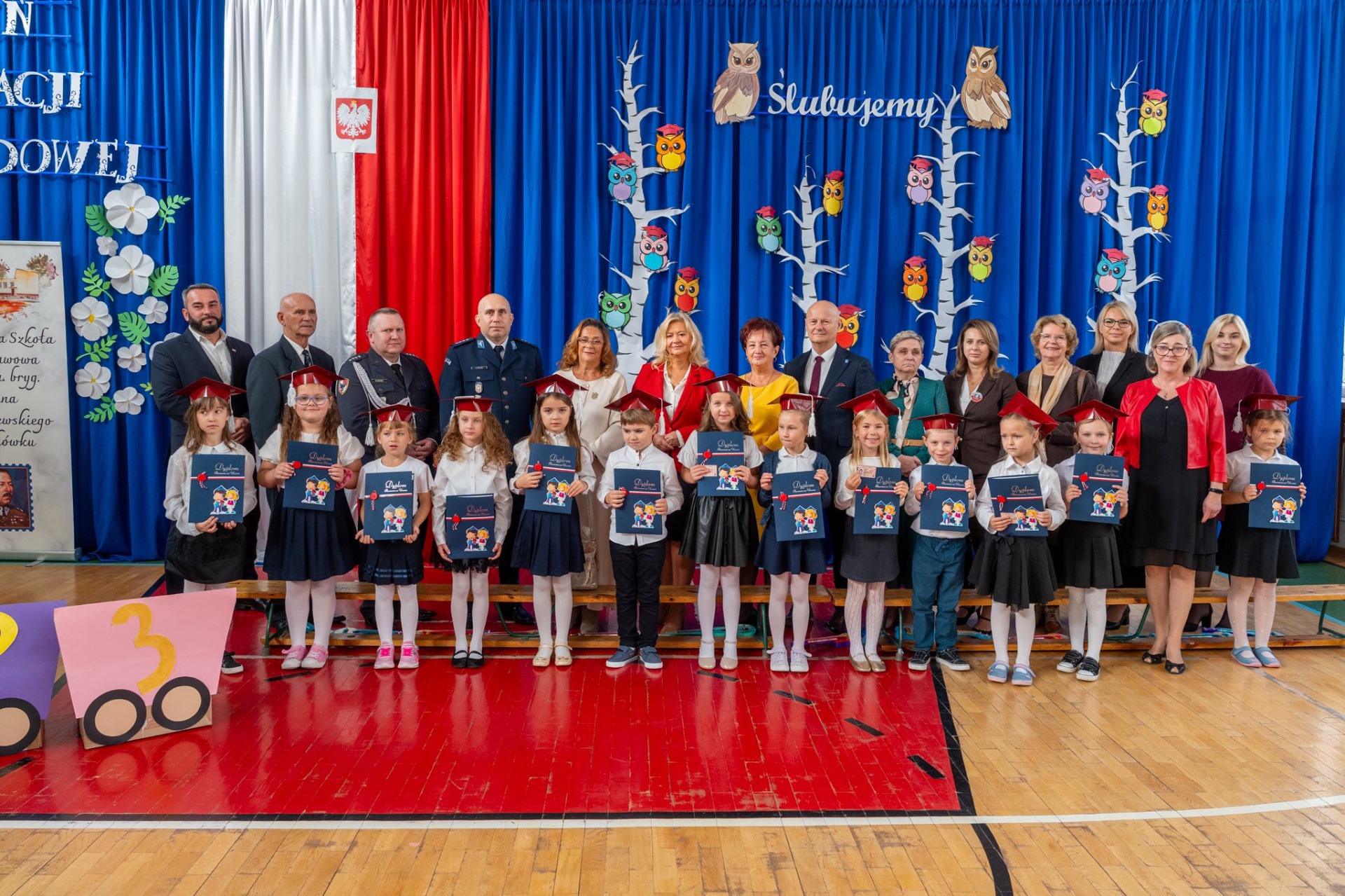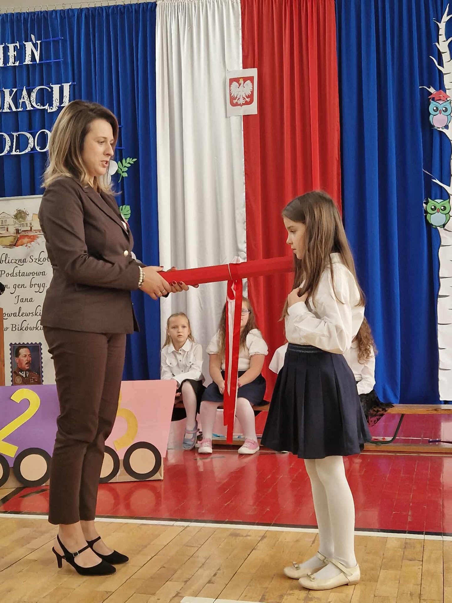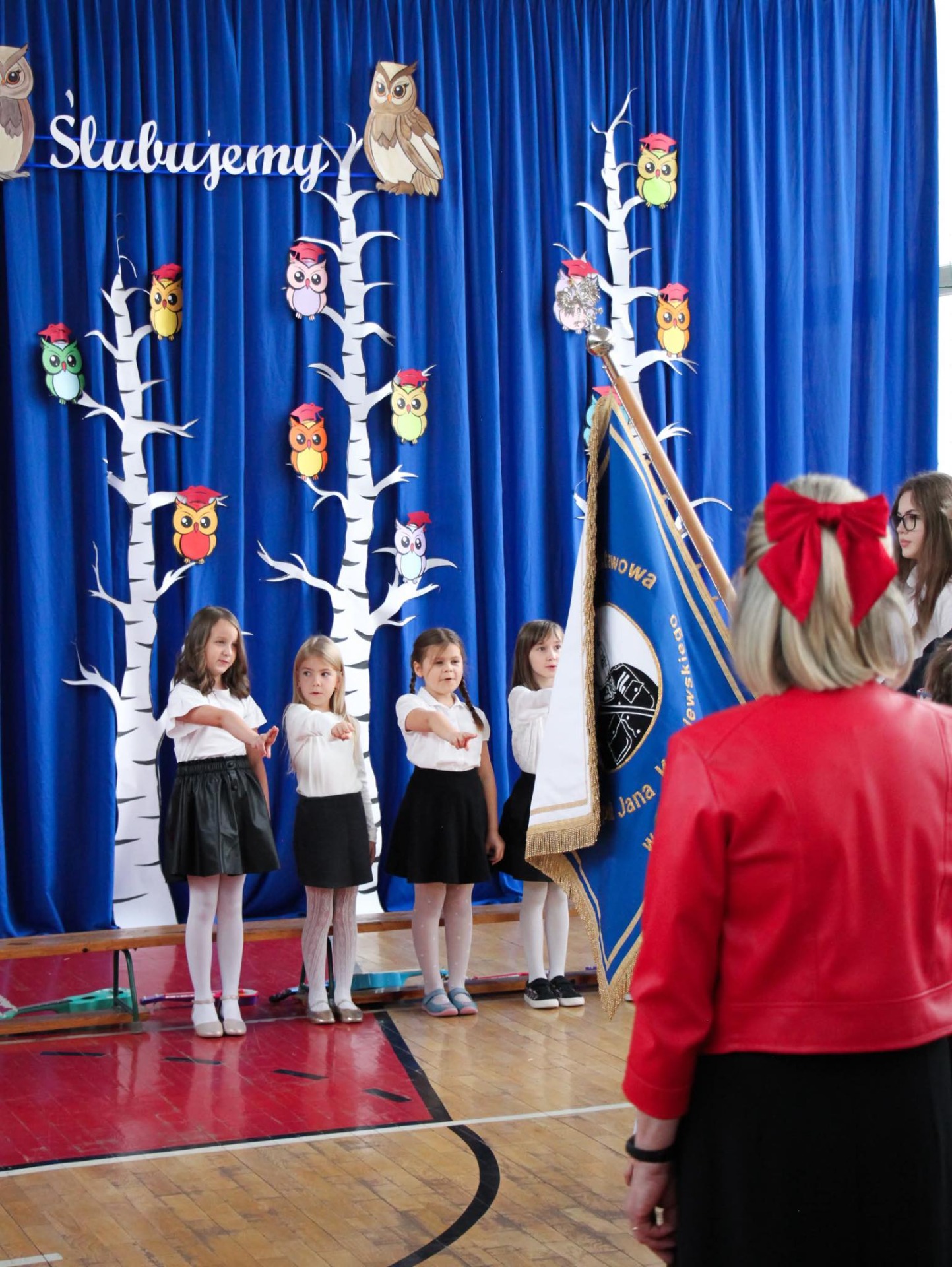 Pierwszoklasiści z dumą złożyli ślubowanie, obiecując być pilnymi uczniami i godnie reprezentować Publiczną Szkołę Podstawową im. gen. bryg. Jana Kowalewskiego w Bikówku. Następnie zostali pasowani przez Panią Dyrektor Agatę Kępkę na uczniów – to był dla nich prawdziwie wzruszający moment.
