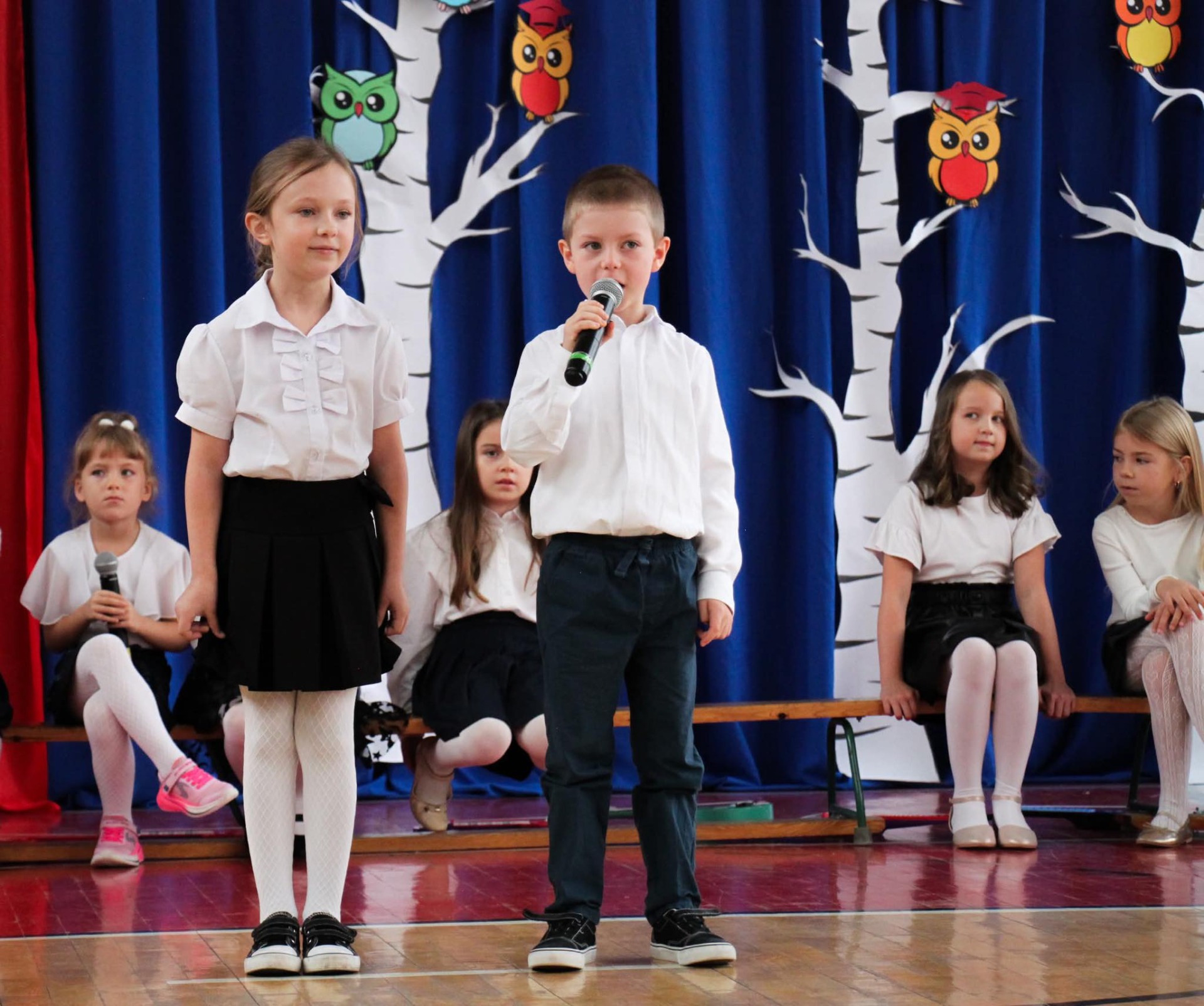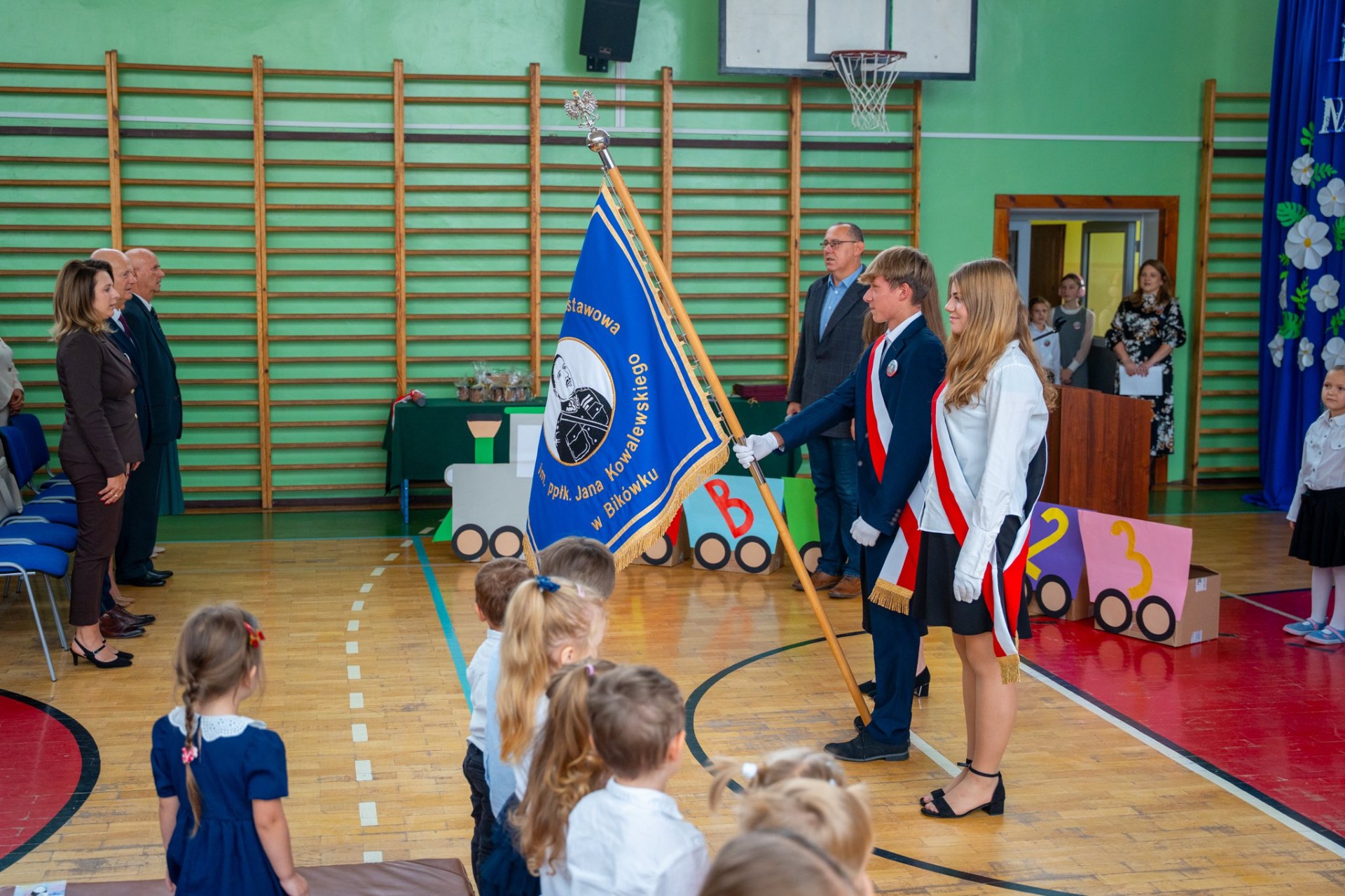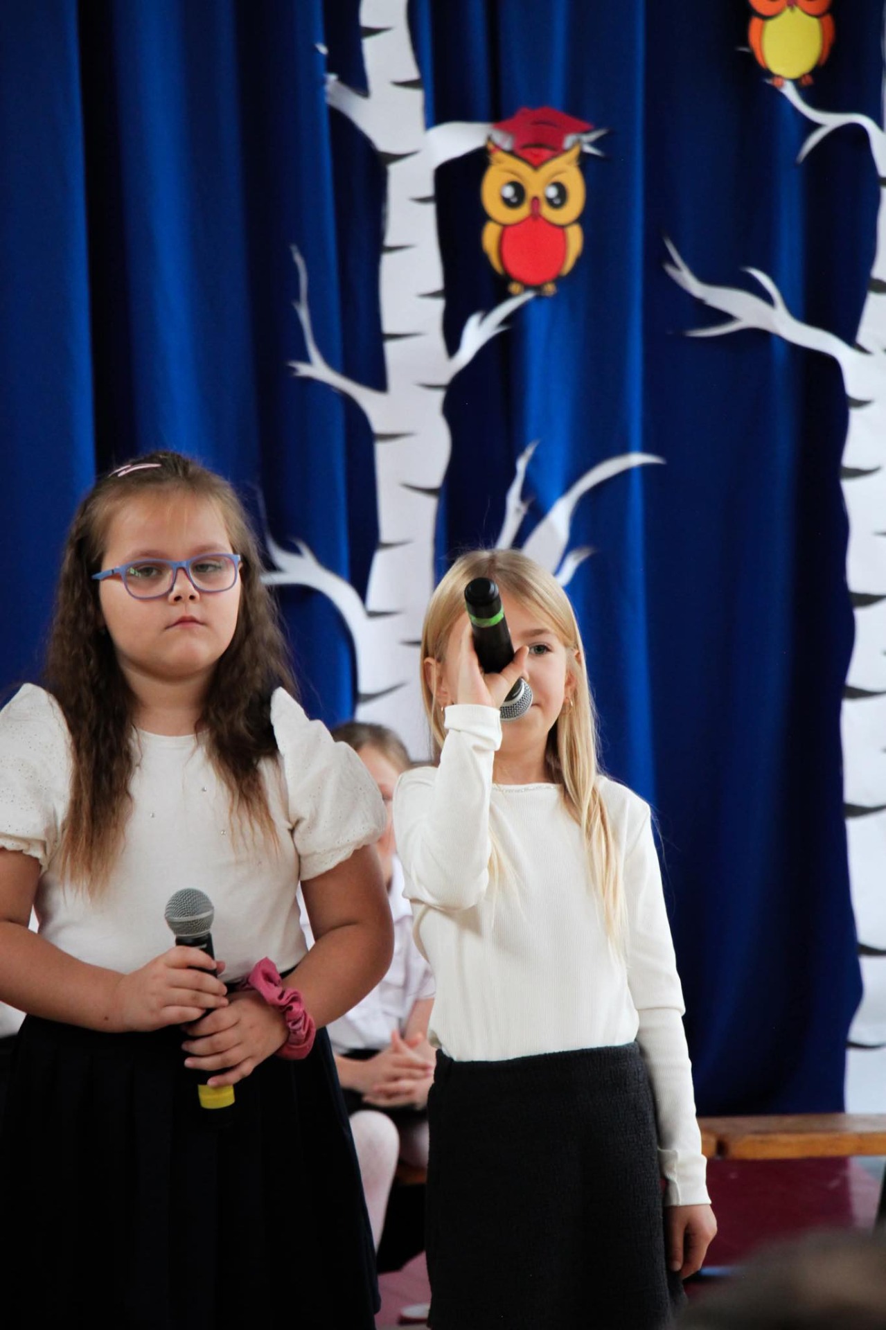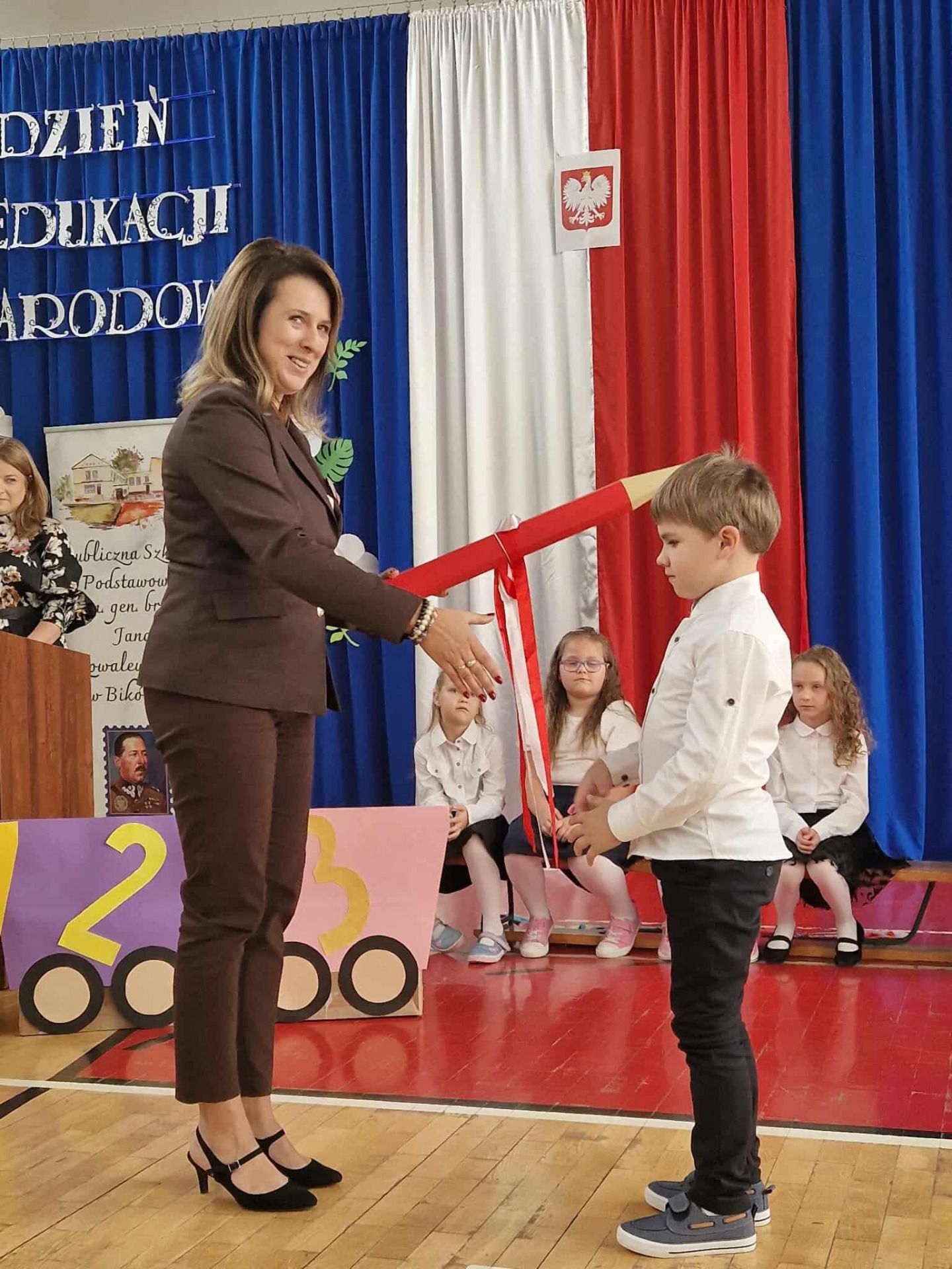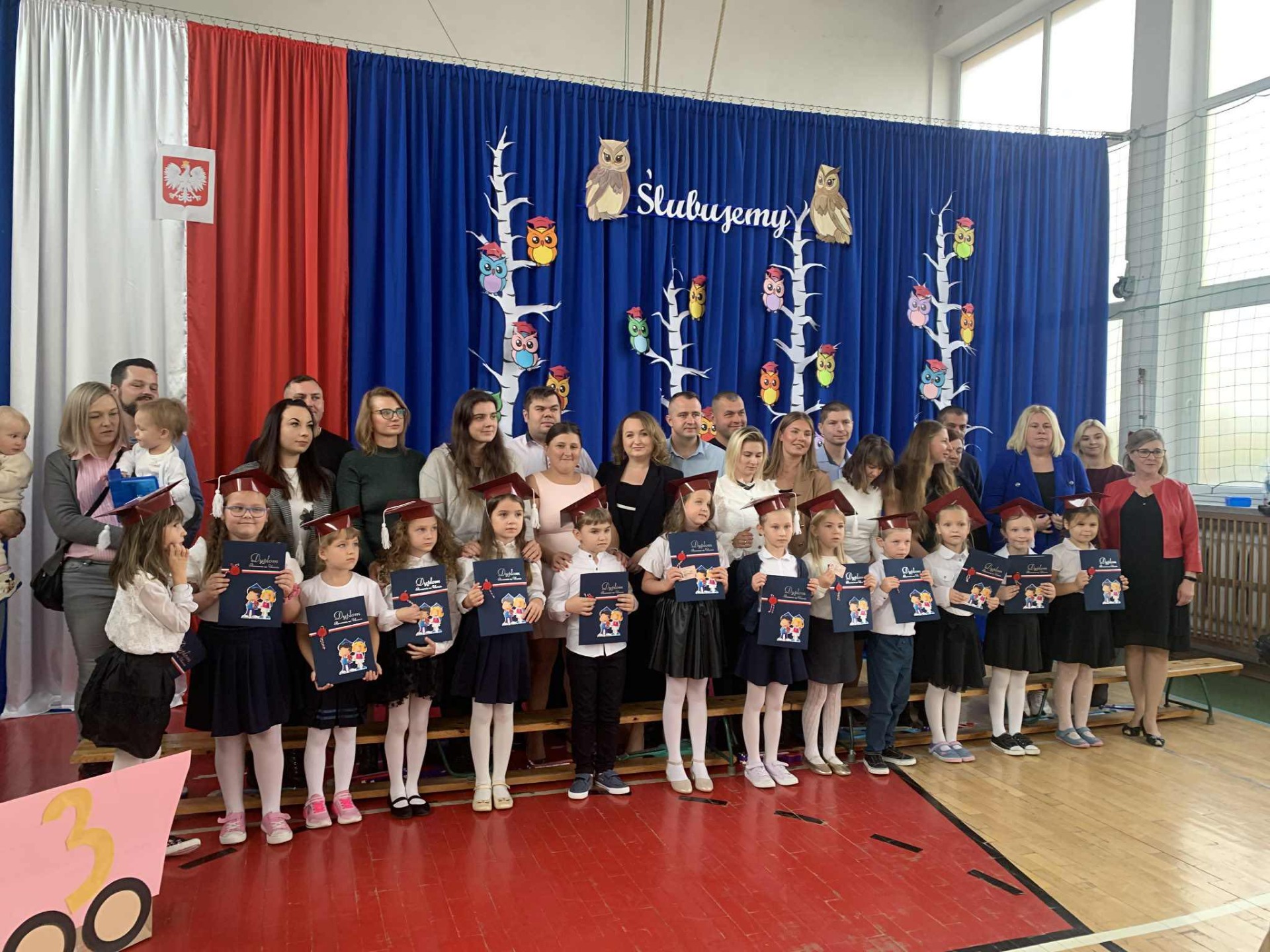 Pierwszoklasiści z dumą złożyli ślubowanie, obiecując być pilnymi uczniami i godnie reprezentować Publiczną Szkołę Podstawową im. gen. bryg. Jana Kowalewskiego w Bikówku. Następnie zostali pasowani przez Panią Dyrektor Agatę Kępkę na uczniów – to był dla nich prawdziwie wzruszający moment.