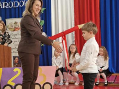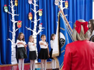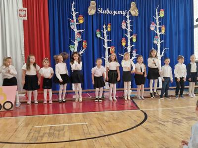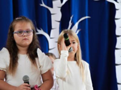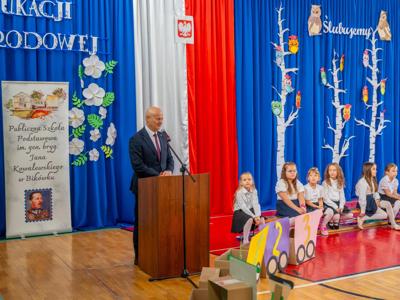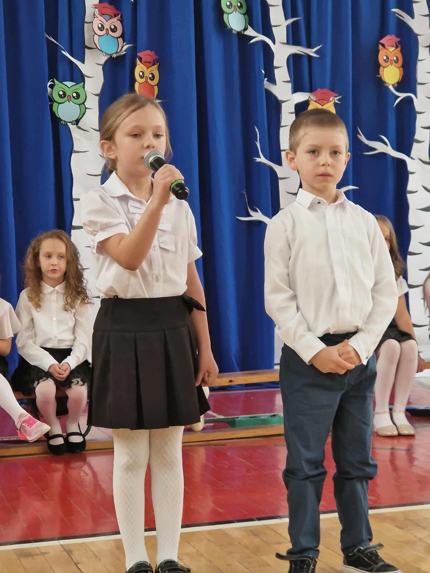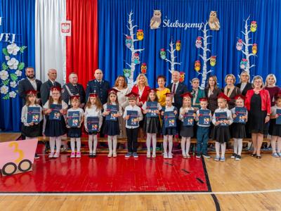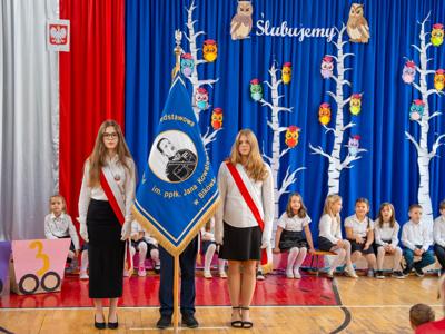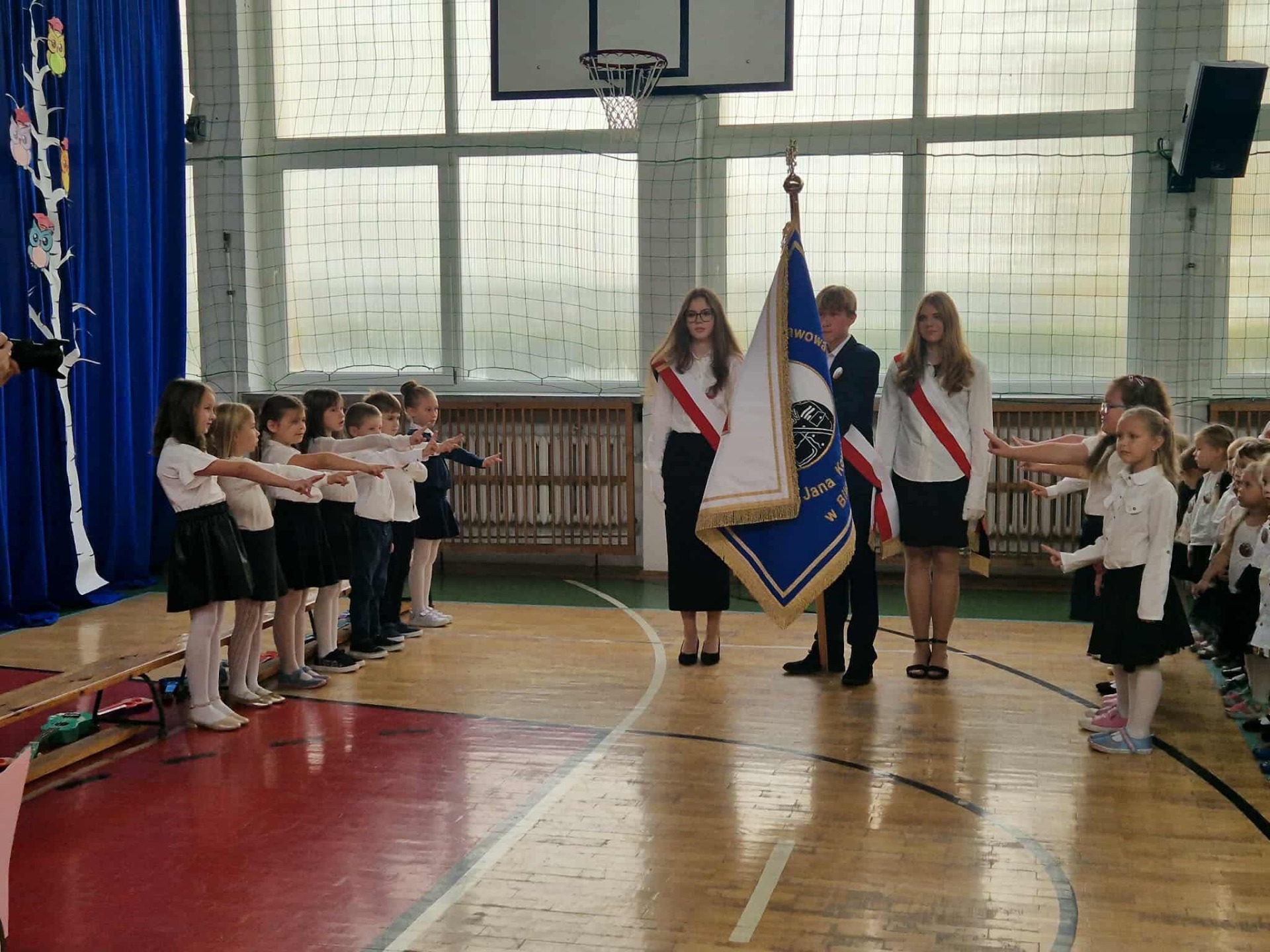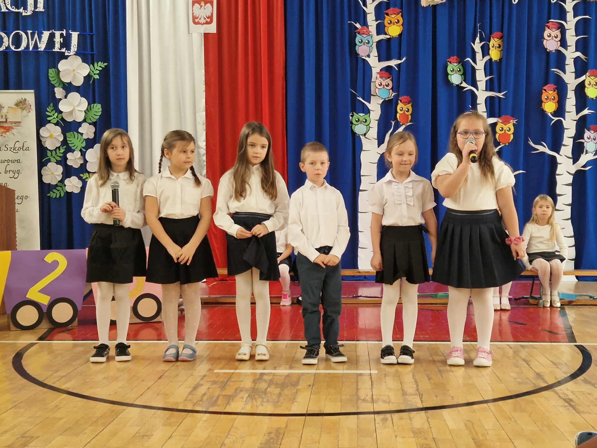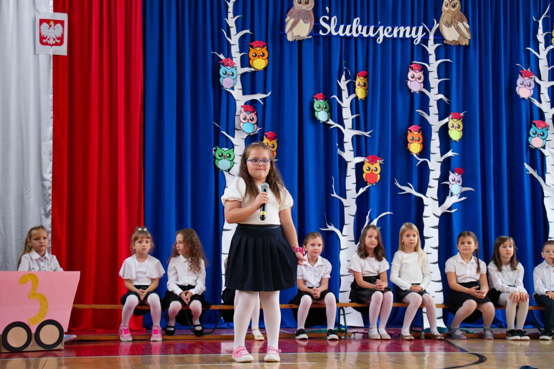 Pierwszoklasiści z dumą złożyli ślubowanie, obiecując być pilnymi uczniami i godnie reprezentować Publiczną Szkołę Podstawową im. gen. bryg. Jana Kowalewskiego w Bikówku. Następnie zostali pasowani przez Panią Dyrektor Agatę Kępkę na uczniów – to był dla nich prawdziwie wzruszający moment.