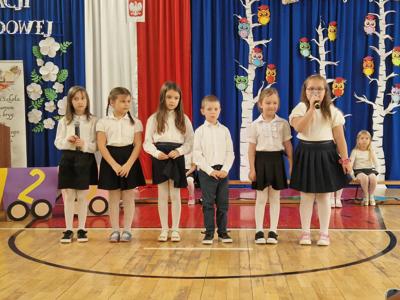 Podczas akademii nie zabrakło pięknych występów artystycznych uczniów oraz podziękowań dla nauczycieli i pracowników szkoły z okazji ich święta.
