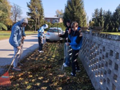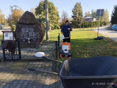 . Dziś członkowie Szkolnego Koła Wolontariatu wraz z opiekunkami posprzątali teren wokół pomnika pamięci w Worowie.