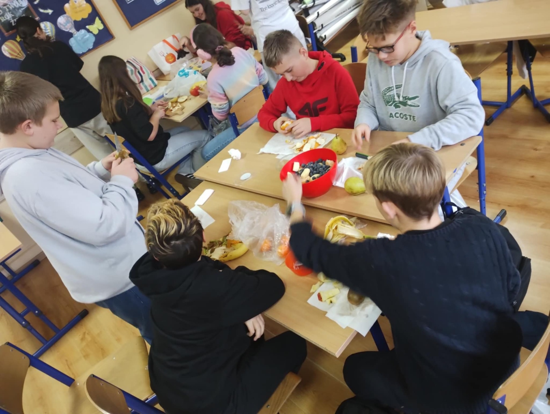 27 listopada na lekcji edukacji zdrowotnej z uczniami klasy VI przygotowaliśmy pyszne i zdrowe sałatki