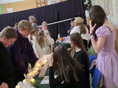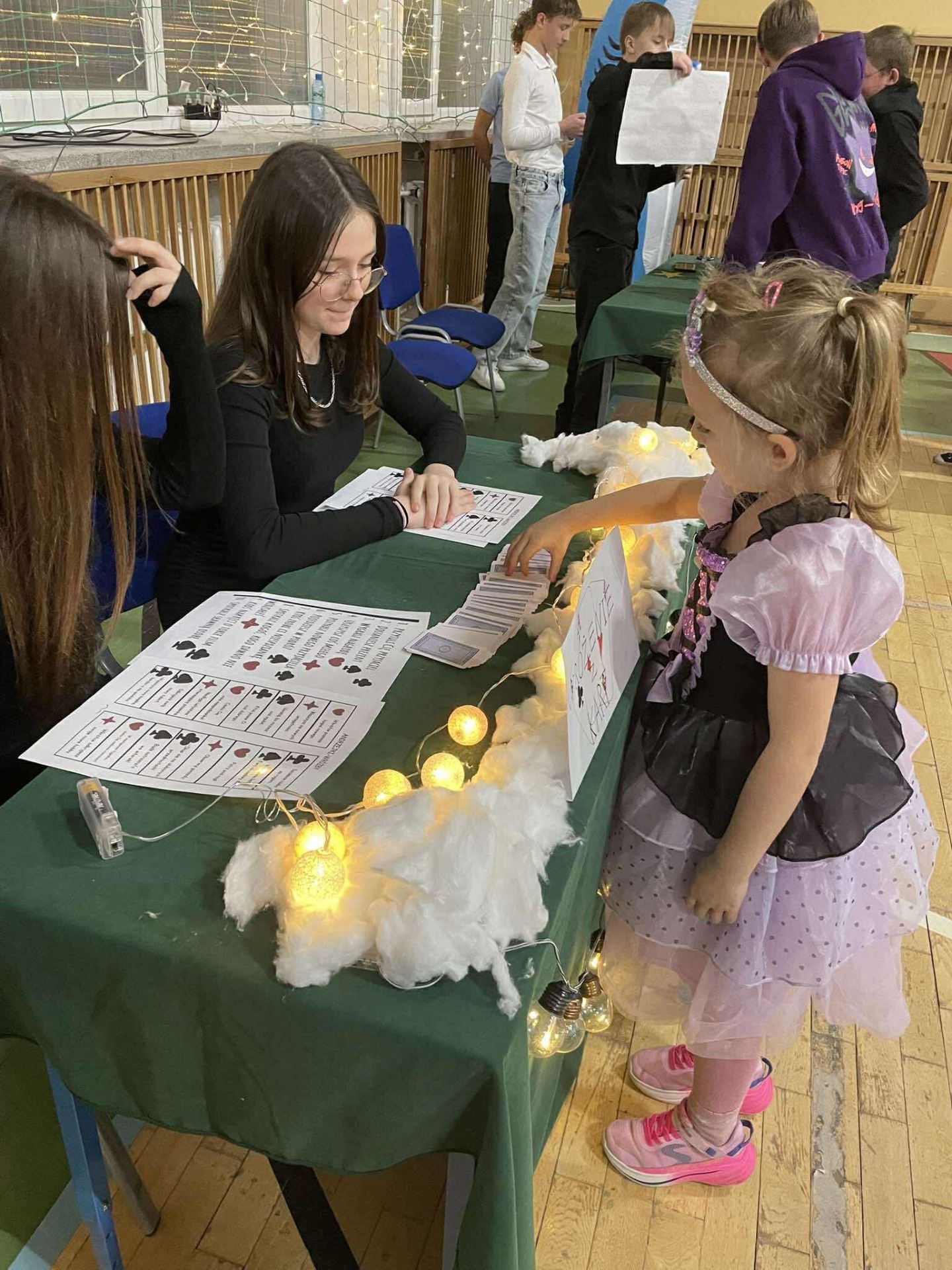Każda klasa przygotowała własne stoisko z wróżbami. Uczniowie z pełnym zaangażowaniem wcielili się w role wróżbitów, a kolejki do stoisk wydłużały się z minuty na minutę.