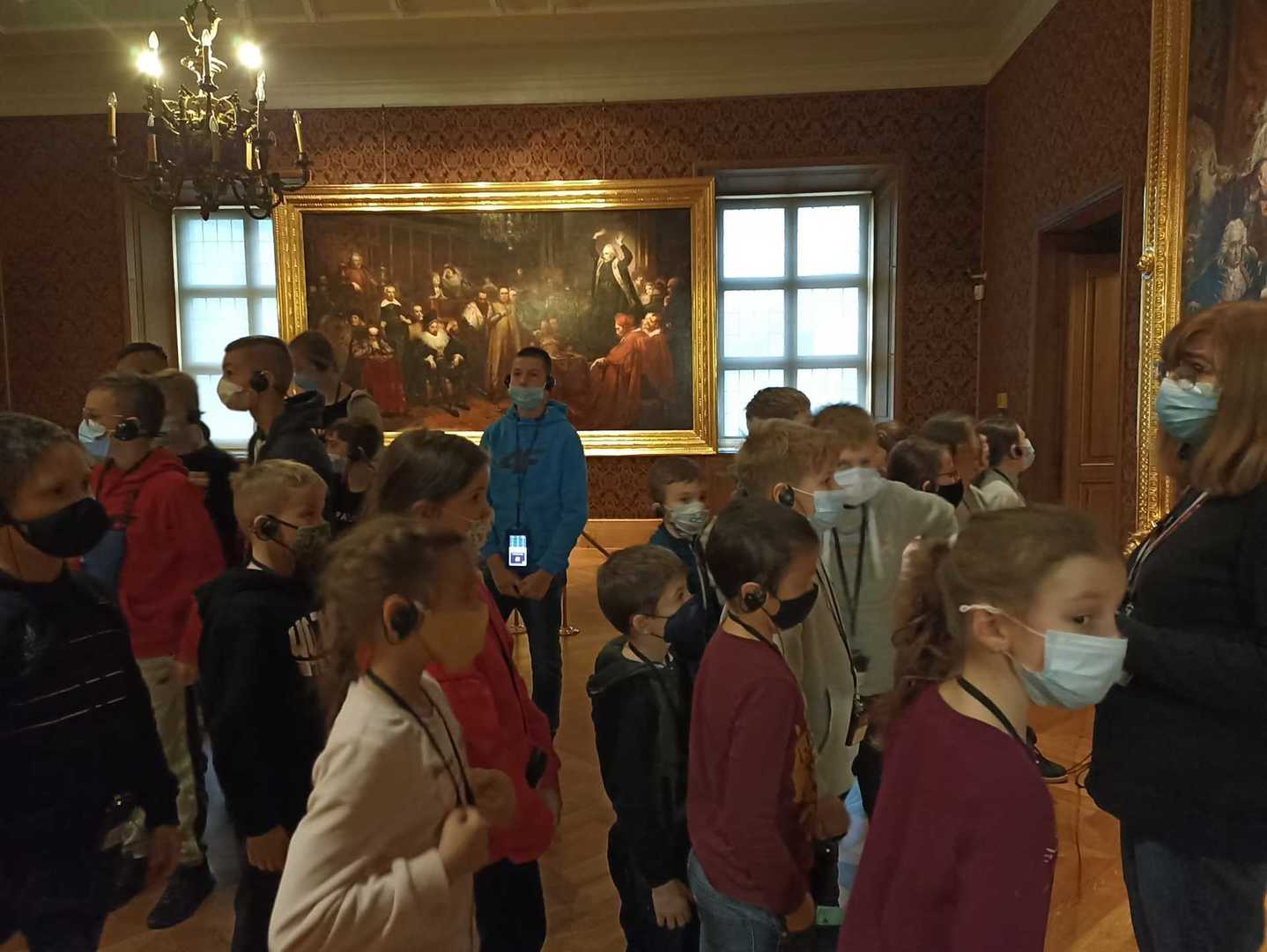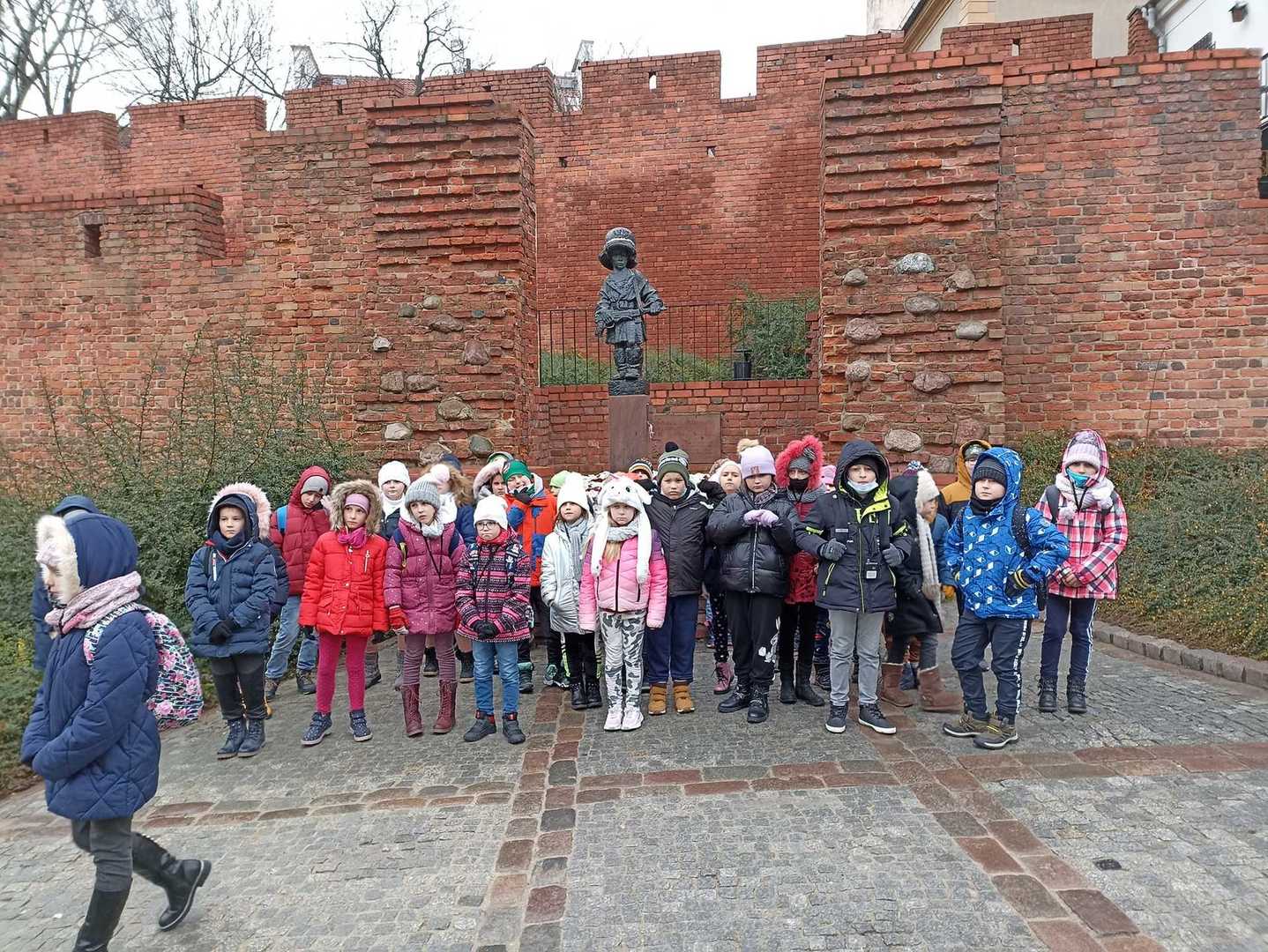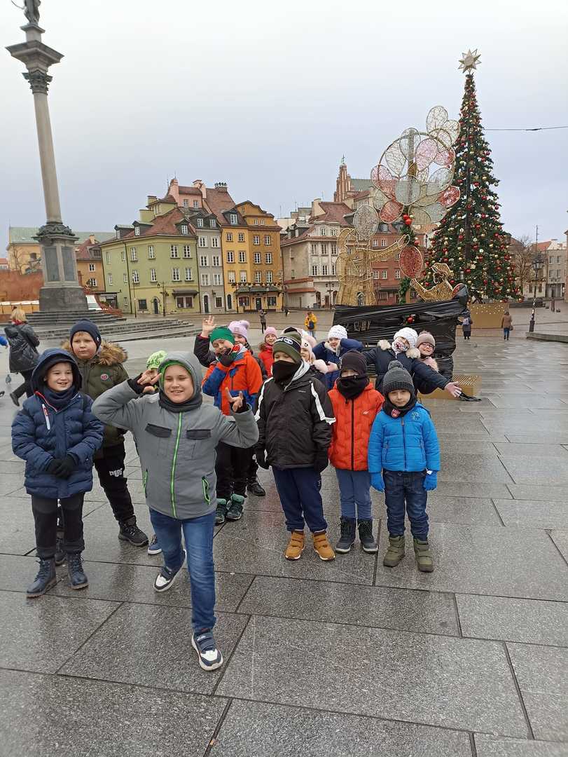 24 listopada 2021r. klasy I-III wybrały się na wycieczkę do Warszawy, która została dofinansowana z programu "Poznaj Polskę". Zwiedzanie rozpoczęliśmy od Zamku Królewskiego, gdzie czekała na nas Pani przewodnik. Uczniowie z zainteresowaniem oglądali kolejne sale i słuchali ciekawostek. Następnie spacerowaliśmy po Starym Mieście - zobaczyliśmy Kolumnę Zygmunta, Syrenkę Warszawską, Barbakan i Pomnik Małego Powstańca. Po pysznym obiedzie, udaliśmy się do Łazienek Królewskich. Widzieliśmy pomnik Fryderyka Chopina, Pałac Na Wyspie oraz wiele innych ciekawych miejsc. Udało nam się spotkać pięknego pawia oraz kilka wiewiórek Ostatnim punktem wycieczki był Królewski Ogród Świateł w Wilanowie. Mimo, iż pogoda nie zawsze nam dopisywała, wróciliśmy bardzo zadowoleni