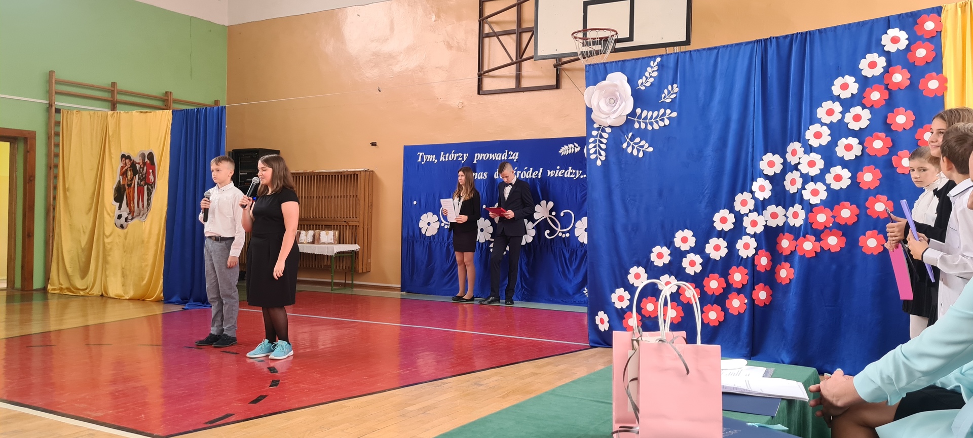 13 października 2021r. w naszej szkole obchodziliśmy Dzień Edukacji Narodowej. Samorząd Szkolny wraz z opiekunami przygotował z okazji tego święta uroczystą akademię: był skecz i piękny Koncert Życzeń oraz śliczne upominki przygotowane przez uczniów. Dziękujemy za przybycie na uroczystość Burmistrzowi Miasta i Gminy Grójec Panu Dariuszowi Gwiazda, Ks. Proboszczowi Robertowi Zalewskiemu, Przewodniczącej Rady Rodziców Małgorzacie Jachowskiej oraz przybyłym rodzicom. Wszystkim nauczycielom i pracownikom szkoły życzymy dużo zdrowia, zadowolenia z pracy, uśmiechu na twarzy i spełnienia marzeń. Naszym aktorom dziękujemy za zaangażowanie oraz trud włożony w przygotowanie tej uroczystości. Kochani uczniowie! Wasz występ był bardzo piękny i emocjonujący, wywołał wiele wzruszeń i radości. Życzymy wszystkim dzieciom kolejnych sukcesów w waszej karierze edukacyjnej.