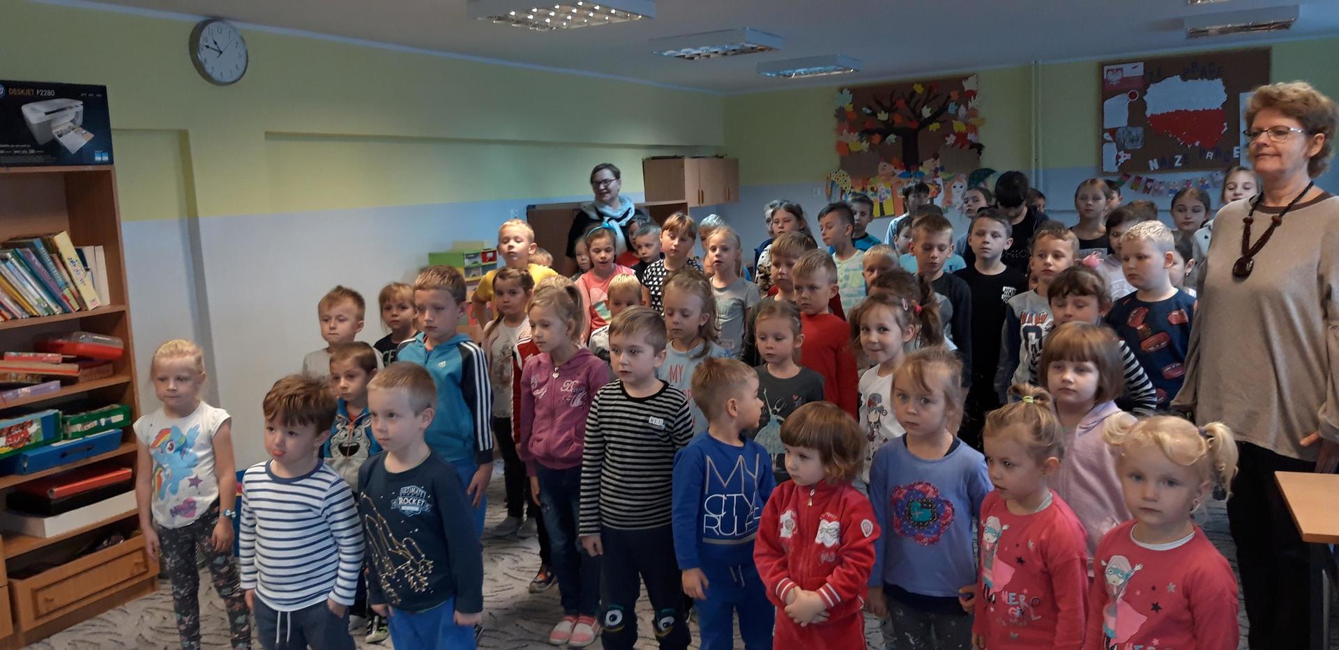 Dla uczniów klas I-III oraz oddziałów przedszkolnych "Smerfy" i "Krasnale" w szkolnej świetlicy odbyła się lekcja, dotycząca symboli narodowych.