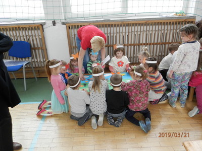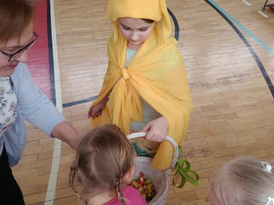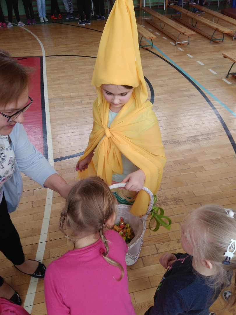 Na koniec „Wiosenne Wróżki” wyczarowały koszyczki ze słodyczami i obdarowały dzieci cukierkami.