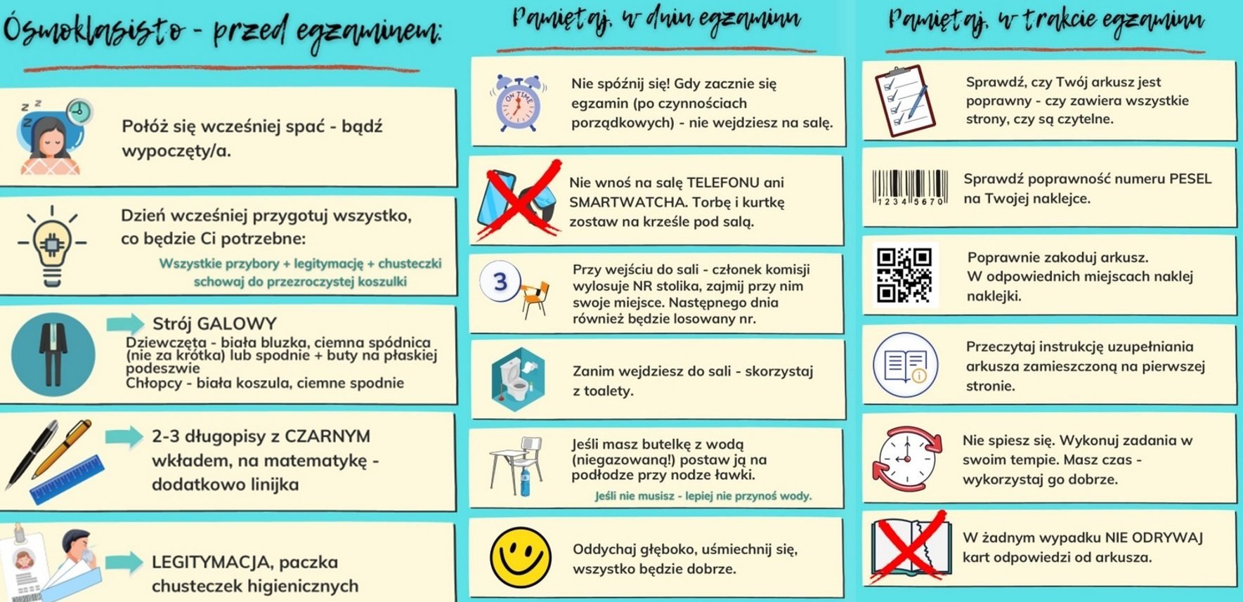 Przed Wami ważne dni – egzamin ósmoklasisty. Trzymamy za Was kciuki i życzymy jak najlepszych wyników.