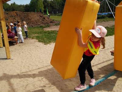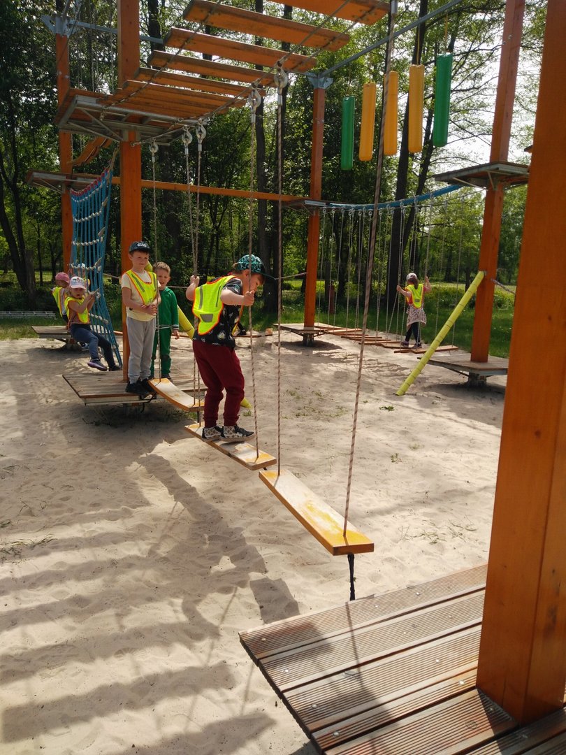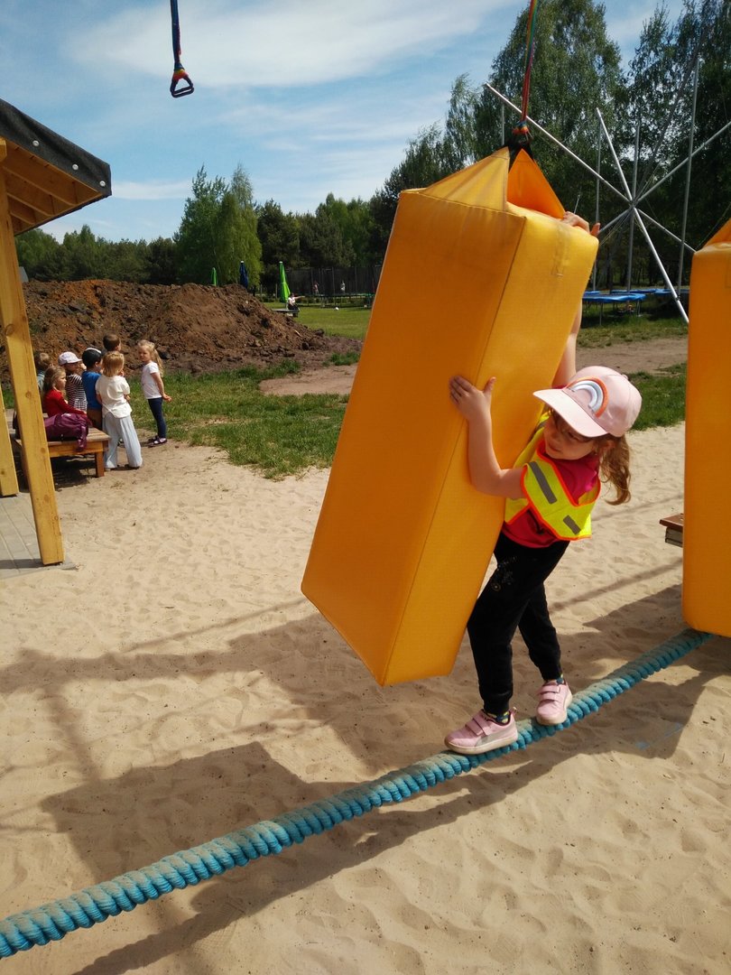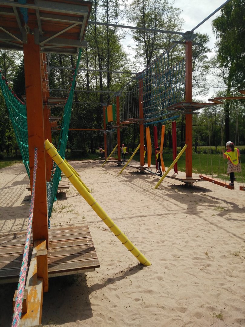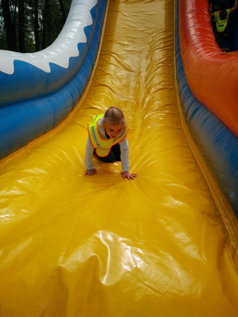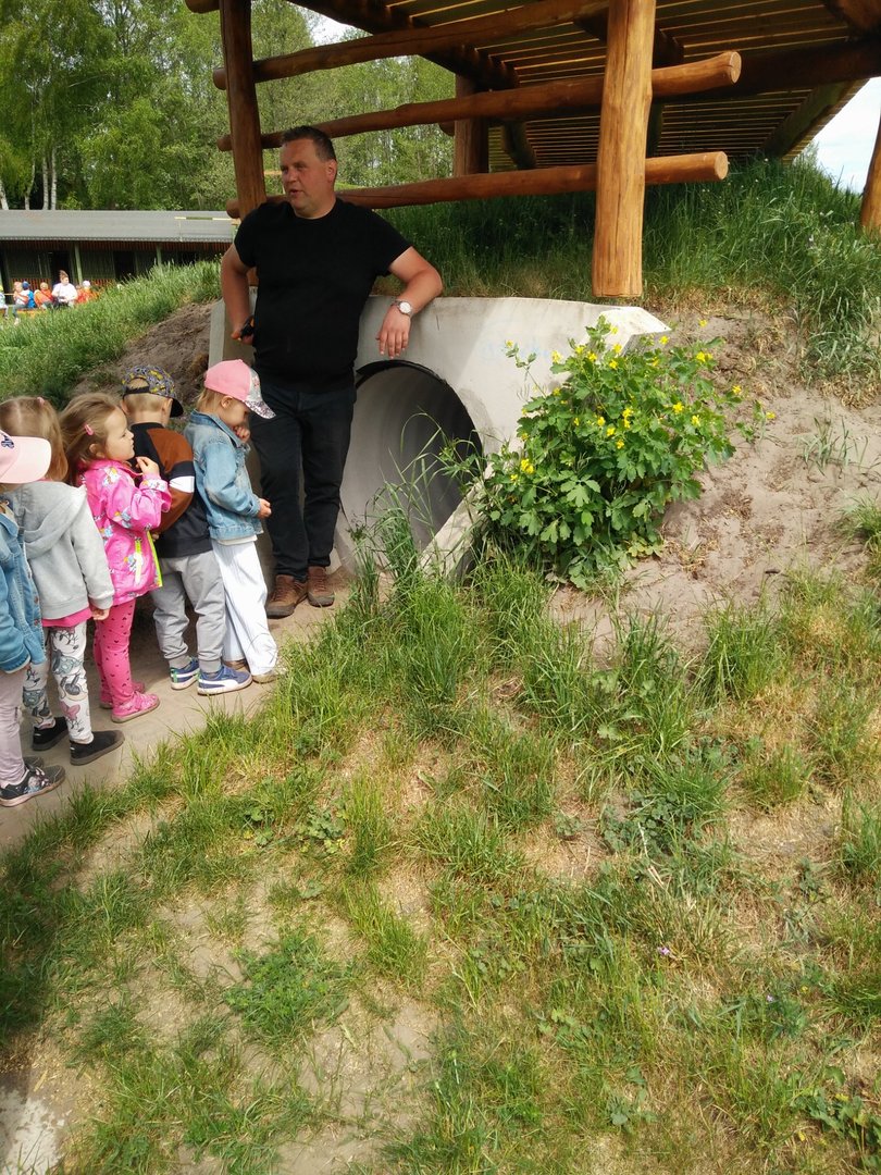 Frajdalandia – to miejsce ostatniej wycieczki Krasnali i Smerfów – park rozrywki, ale również miejsce, z którego można wywieźć pokaźny bagaż wiedzy. Krasnale uczestniczyły w pokazie sokolniczym, podczas którego dowiedziały się wielu ciekawych informacji na temat sokołów, jastrzębi, sów i innych ptaków. Obejrzały piękne ptaki z bliska, zrobiły sobie z nimi zdjęcia. W trakcie pokazu przekonały się, jak cicho lata sowa. Odwiedziły również mini ZOO, w którym karmiły zwierzaki. Po zdobyciu pokaźnej porcji wiedzy udały się na dmuchane zjeżdżalnie, tyrolkę, trampoliny oraz linowy tor przeszkód. Nie zabrakło również atrakcji w postaci przejścia przez labirynt. Dzieci radośnie spędziły czas na powietrzu bawiąc się i dokazując, co można zobaczyć na załączonych zdjęciach i filmikach.