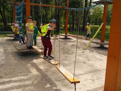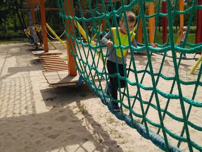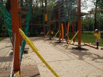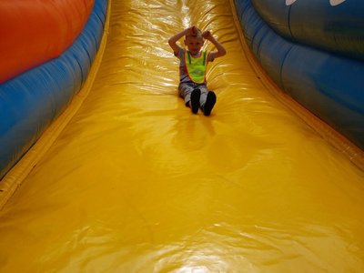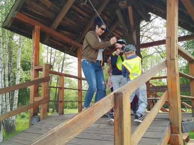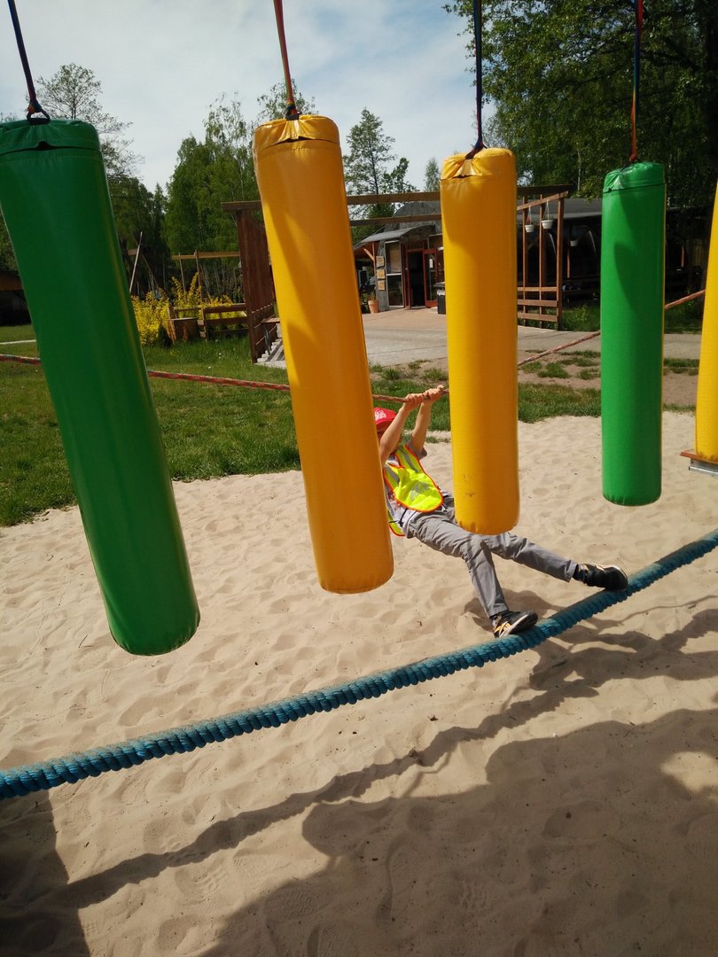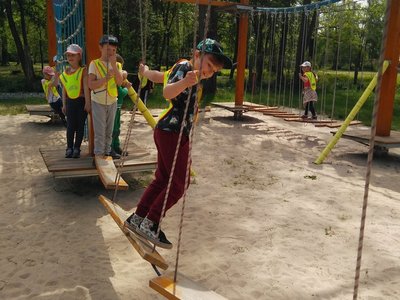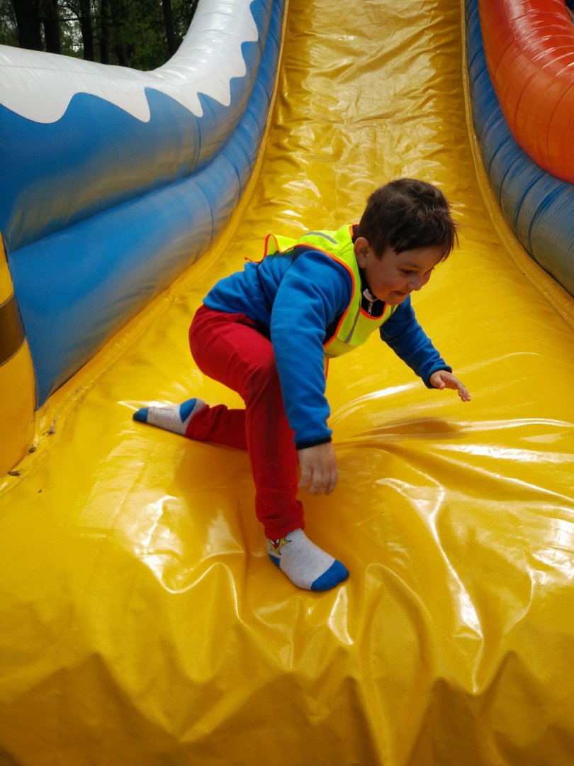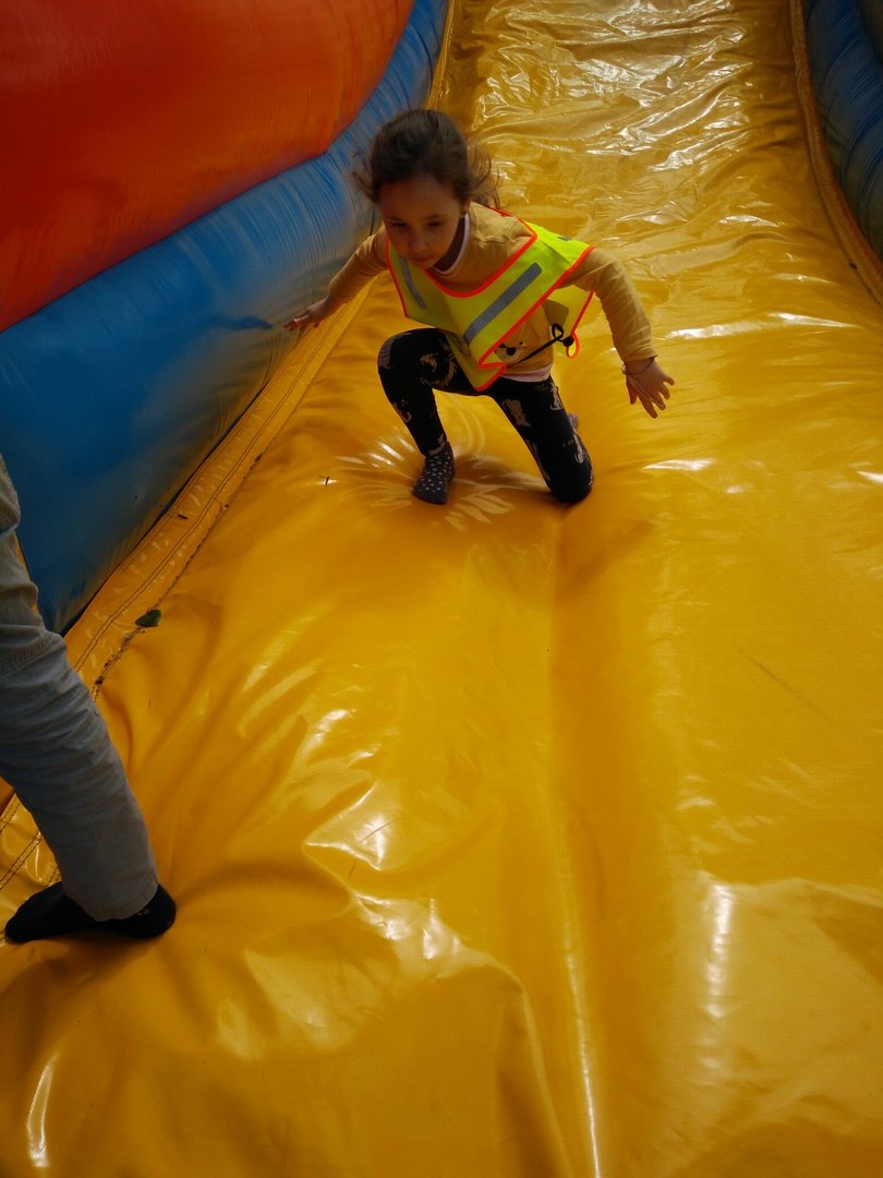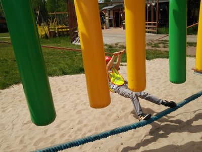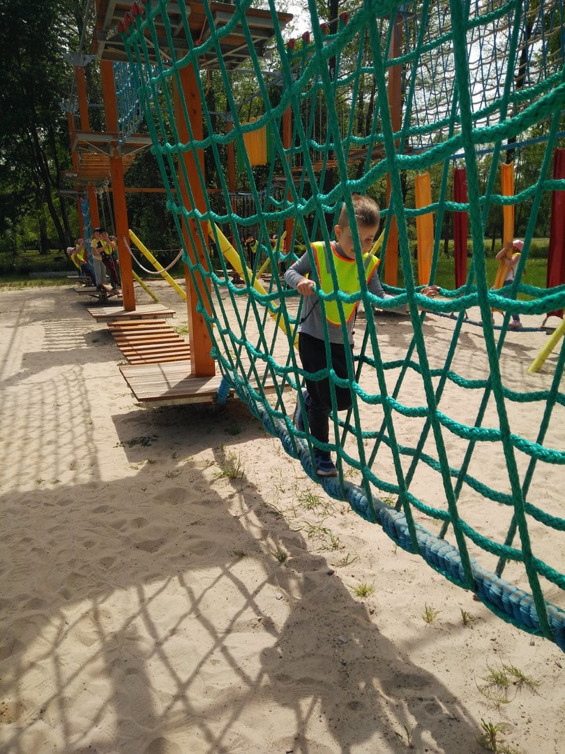 Frajdalandia – to miejsce ostatniej wycieczki Krasnali i Smerfów – park rozrywki, ale również miejsce, z którego można wywieźć pokaźny bagaż wiedzy. Krasnale uczestniczyły w pokazie sokolniczym, podczas którego dowiedziały się wielu ciekawych informacji na temat sokołów, jastrzębi, sów i innych ptaków. Obejrzały piękne ptaki z bliska, zrobiły sobie z nimi zdjęcia. W trakcie pokazu przekonały się, jak cicho lata sowa. Odwiedziły również mini ZOO, w którym karmiły zwierzaki. Po zdobyciu pokaźnej porcji wiedzy udały się na dmuchane zjeżdżalnie, tyrolkę, trampoliny oraz linowy tor przeszkód. Nie zabrakło również atrakcji w postaci przejścia przez labirynt. Dzieci radośnie spędziły czas na powietrzu bawiąc się i dokazując, co można zobaczyć na załączonych zdjęciach i filmikach.