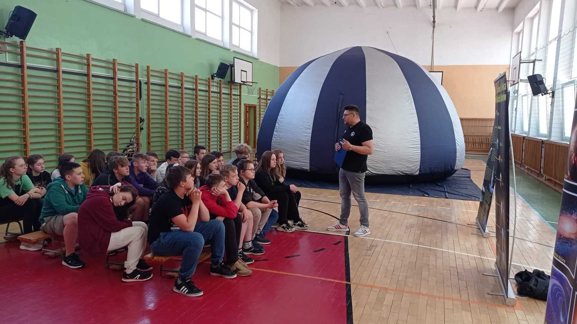 Dziś naszą szkołę odwiedziło mobilne planetarium i zabrało dzieci w niesamowitą podróż poza nasz świat, na krańce Galaktyki :)