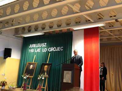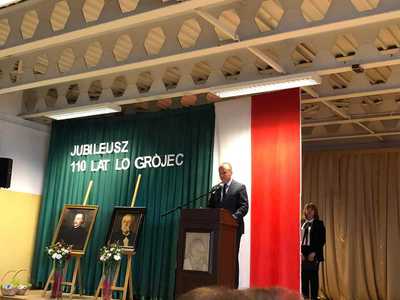 W dniu 11.04.2022r. pani dyrektor Agata Kępka wraz z pocztem sztandarowym w składzie: Marta Czwartyńska, Paulina Sobczak, Aleksandra Łach, Aleksandra Przybytniak, Piotr Muszyński, Aleksander Szwech oraz opiekunem pocztu panią Wioletą Zbierańską-Kamińską miała zaszczyt uczestniczyć w obchodach 110-lecia Liceum Ogólnokształcącego im. Piotra Skargi w Grójcu. Uroczystość rozpoczęła się mszą świętą w Kościele św. Mikołaja w Grójcu, po której wszyscy uczestnicy przemaszerowali do budynku szkoły. W auli liceum odbyła się część oficjalna ceremonii składająca się z przemówień okolicznościowych, ślubowania absolwentów oraz z doskonale przygotowanego programu słowno - muzycznego pt. " W przeszłości zapisana jest przyszłość". Serdecznie dziękujemy Dyrekcji, Gronu Pedagogicznemu, Radzie Rodziców oraz Uczniom za zaproszenie.