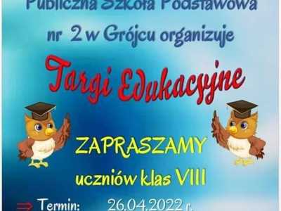 5.04.2022Uwaga uczniowie klasy 8❗Publiczna Szkoła Podstawowa nr 2 w Grójcu zaprasza ósmoklasistów na TARGI EDUKACYJNE 📚 w...