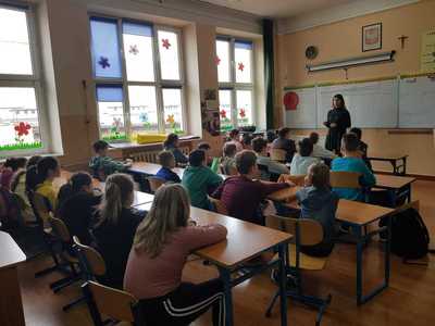 Dnia 05.04.2022r. uczniowie naszej szkoły uczestniczyli w warsztatach profilaktycznych. Realizatorem zajęć było Centrum Profilaktyki Ekspert z siedzibą w Krakowie. Uczestnicy warsztatów byli podzieleni na trzy grupy i mieli możliwość pogłębiania swojej wiedzy na określone tematy przez dwie godziny. Uczniowie klasy czwartej i piątej skupiali się na temacie "Budowanie relacji z otoczeniem w dobie pandemii. Jak polubić innych i samego siebie?". Natomiast ich starsi koledzy szukali sposobów i odpowiedzi do tematu "Jak radzić sobie z problemami, unikanie stanów lękowych,depresji. Gdzie szukać pomocy"