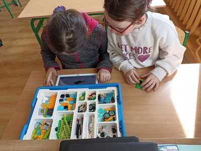 7.04.20227.04 klasa II podczas zajęć rozwijała umiejętności z programowania wykorzystując klocki LEGO :) Zbudowane roboty...