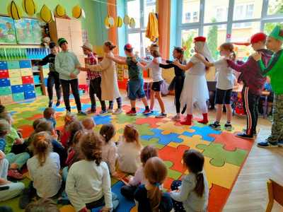 W ramach projektu "Z kulturą mi do twarzy" klasa V z panią Anetą Głowacką przygotowała dla oddziałów przedszkolnych inscenizację do wiersza Juliana Tuwima pt. "Rzepka". Dziękujemy rodzicom za przygotowanie strojów oraz koleżance Mai z IV klasy za wsparcie