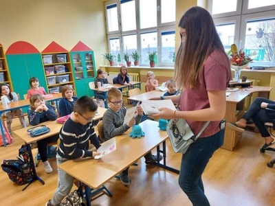 Dzi艣 nasza szkolna listonoszka mia艂a bardzo du偶o pracy. Od rana wr臋cza艂a nieco spó藕nione kartki walentynkowe których musia艂a dor臋czy膰 ponad 70
