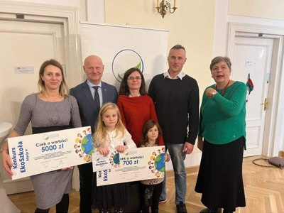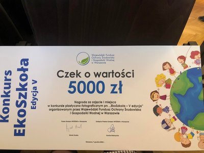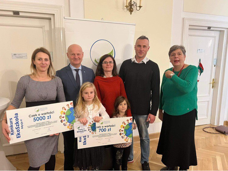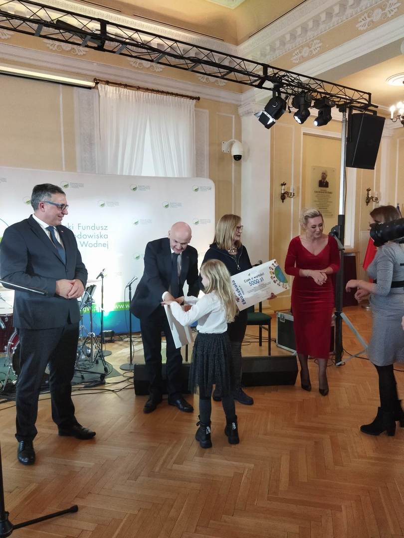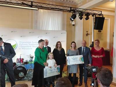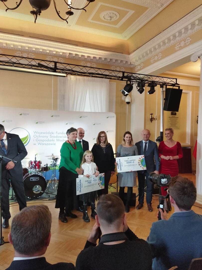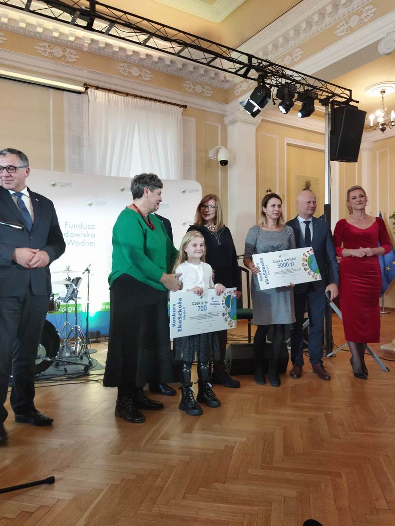 Nasza szkoła odniosła sukces w konkursie Eko-szkoła V edycja organizowany przez Wojewódzki Fundusz Ochrony Środowiska i Gospodarki Wodnej w Warszawie. Do konkursu zgłoszono 395 prac plastycznych z województwa mazowieckiego. Nasza uczennica Lena Martyniak z klasy drugiej zajęła I miejsce i otrzymała nagrodę w wysokości 700 zł,szkoła za działania ekologiczne - I miejsce otrzymała 5000 zł. Nagrodę wręczała Marszałek Sejmu Małgorzata Gosiewska. W uroczystości brali udział Burmistrz Gminy i Miasta Grójec Dariusz Gwiazda,dyrektor szkoły Agata Kępka,wychowawca klasy drugiej Marzanna Karpińska i rodzice Lenki. Gratulujemy i życzymy kolejnych sukcesów :)